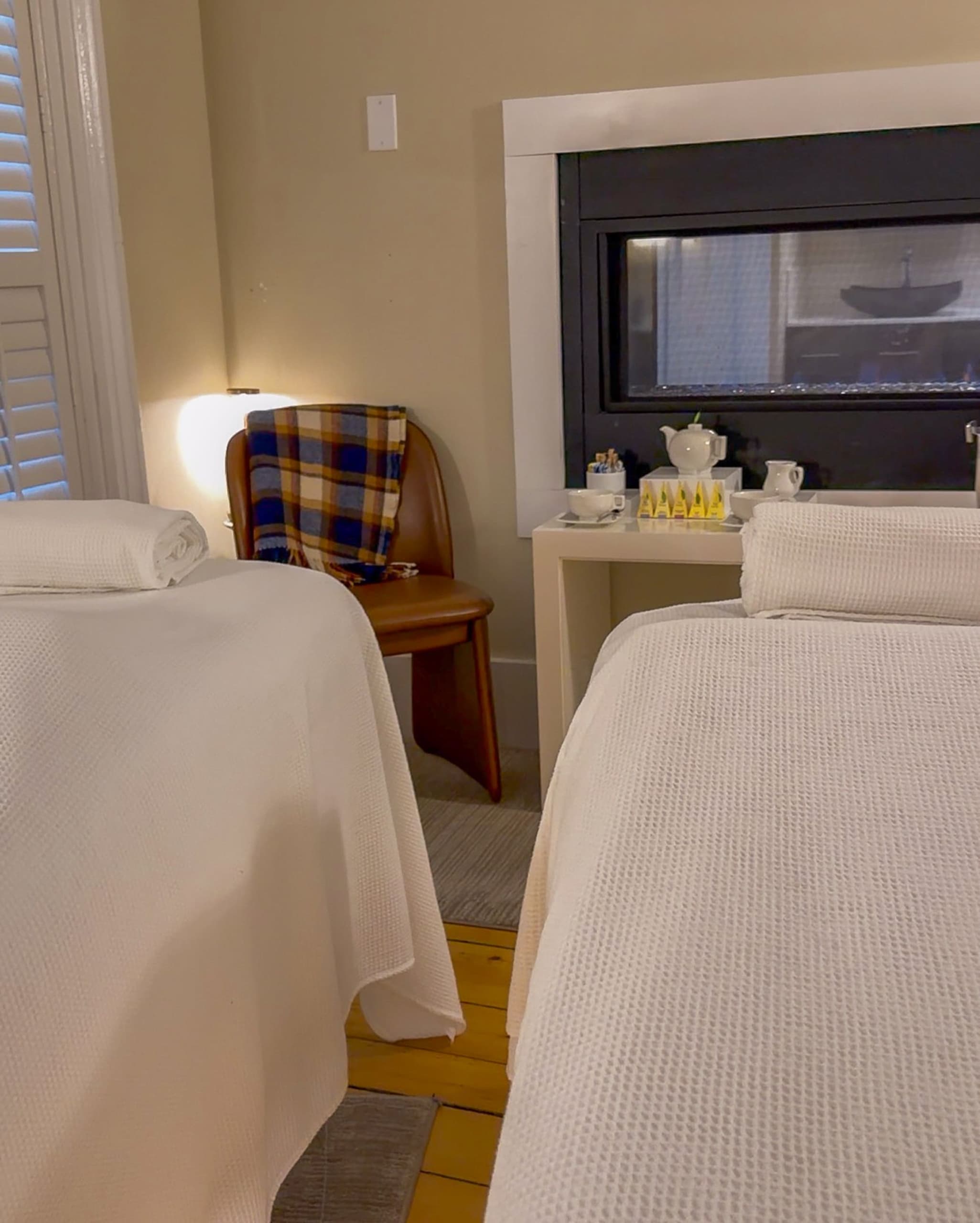 Gracefully appointed guestrooms offering serene natural light and charming Chatham views, creating an intimate retreat steeped in timeless New England elegance.